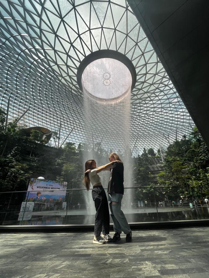 Friends saying goodbye at Changi Airport (photo: Izzie Bjonness-Jacobsen)