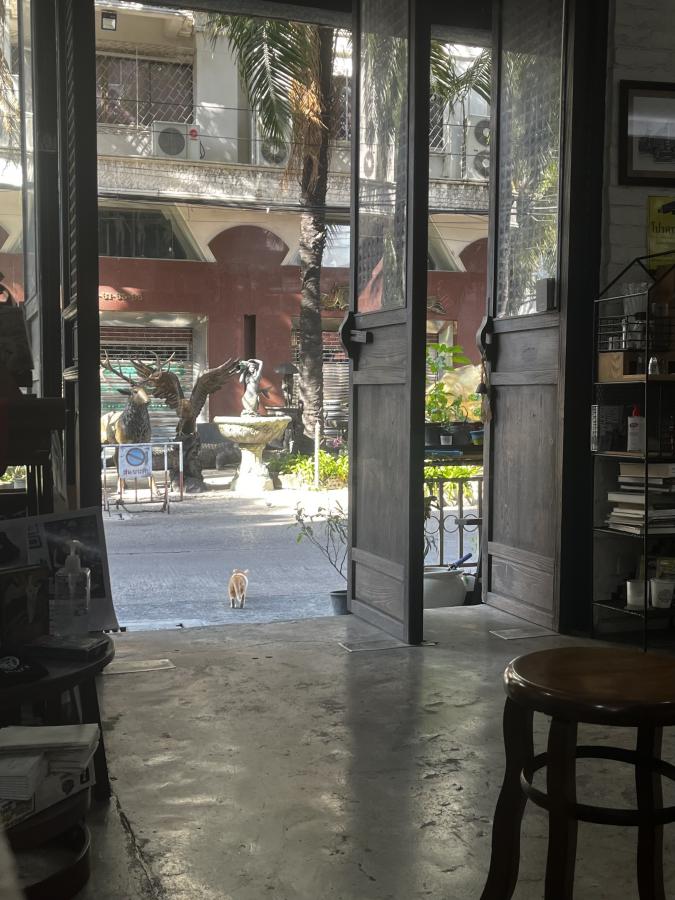 A cat leaving a café in Bangkok (photo: Izzie Bjonness-Jacobsen)