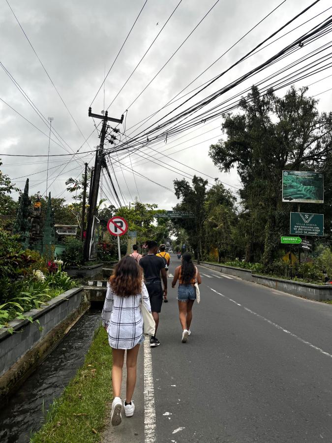 Walking in Ubud with our Bali travel group (photo: Izzie Bjonness-Jacobsen)