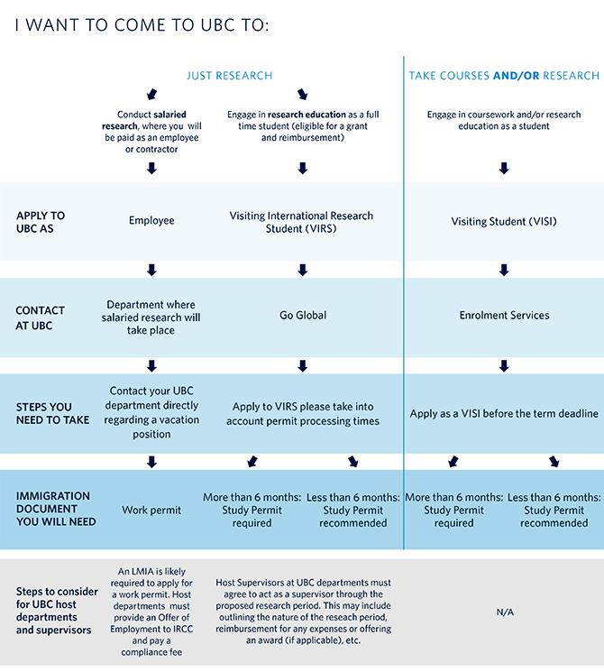 Your program, projects, and contacts at UBC depend on whether you plan to come to UBC to do research and earn a salary as an employee or whether the research is part of your educational program as a student at your home institution.